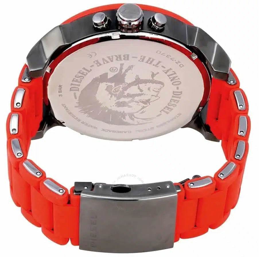 Shop Diesel DZ7370 Red Rubber Watch for men – bold oversized dial, chronograph movement, premium red rubber strap & statement style. Perfect for standout looks.